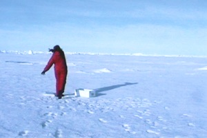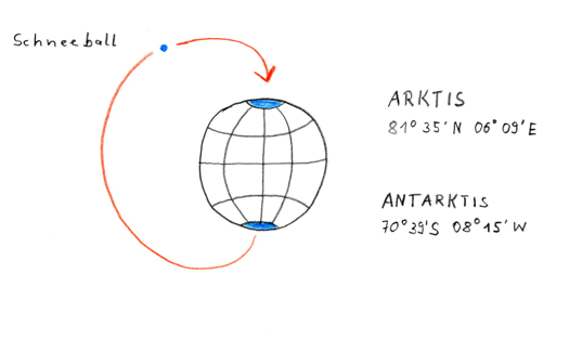 Der Schneeball wurde am 24. Januar 2005 aus der Antarktis in die Arktis geworfen und landete dort am 3. September 2005